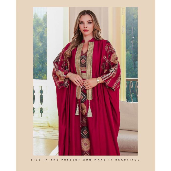 طقم فستان وعباية مطرزة للسيدات