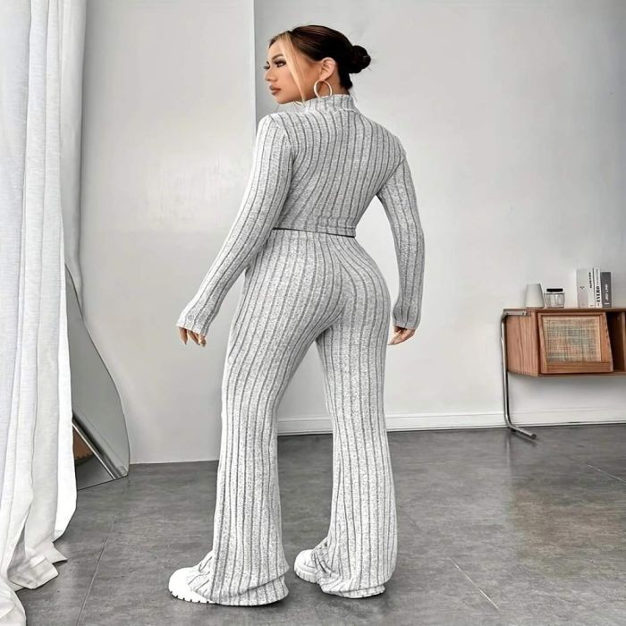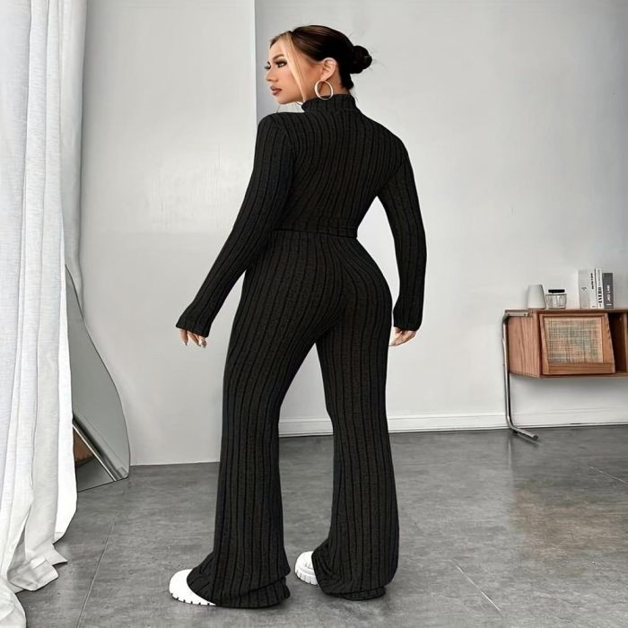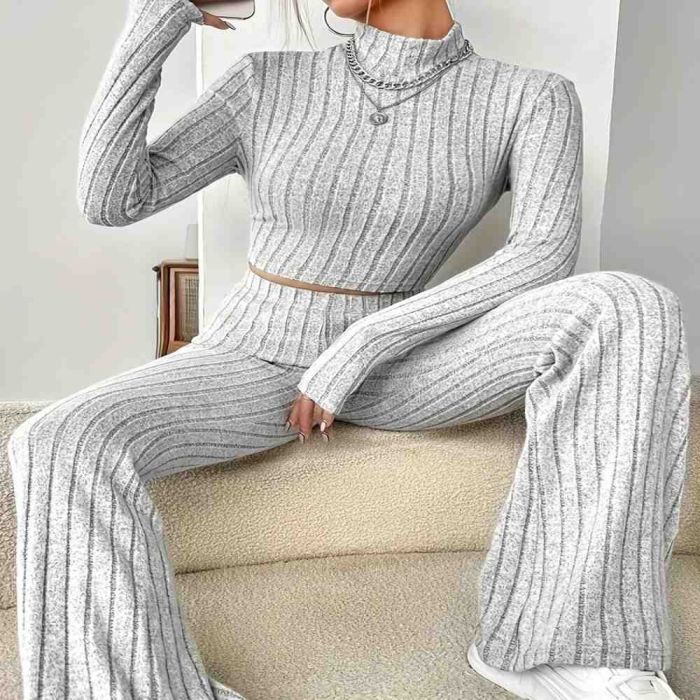 طقم محبوك بأكمام طويلة للسيدات مصنوع من خيوط محبوكة عالية الجودة توفر الدفء والراحة، يتميز بتصميمه المريح والفضفاض الذي يجمع بين الأناقة والاسترخاء، يمنح حرية الحركة المطلقة، يحافظ على جودته وشكله الجذاب، قطعة مريحة متعددة الاستخدام.