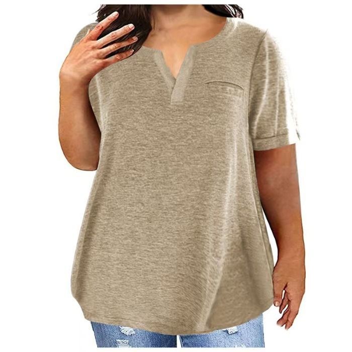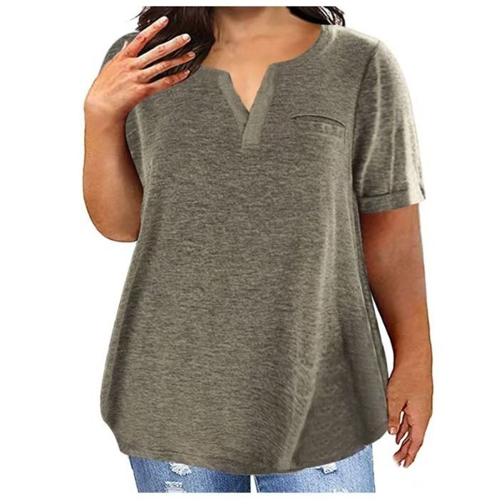 - تيشيرت نسائي فضفاض بأكمام قصيرة وجيب أمامي