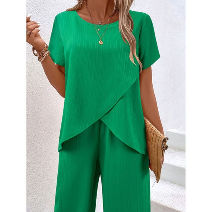 صفقة اليوم هي طقم بنطلون وبلوزة بأكمام قصيرة للسيدات