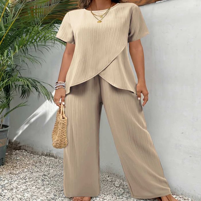 - طقم كاجوال فضفاض من قطعتين بأكمام قصيرة