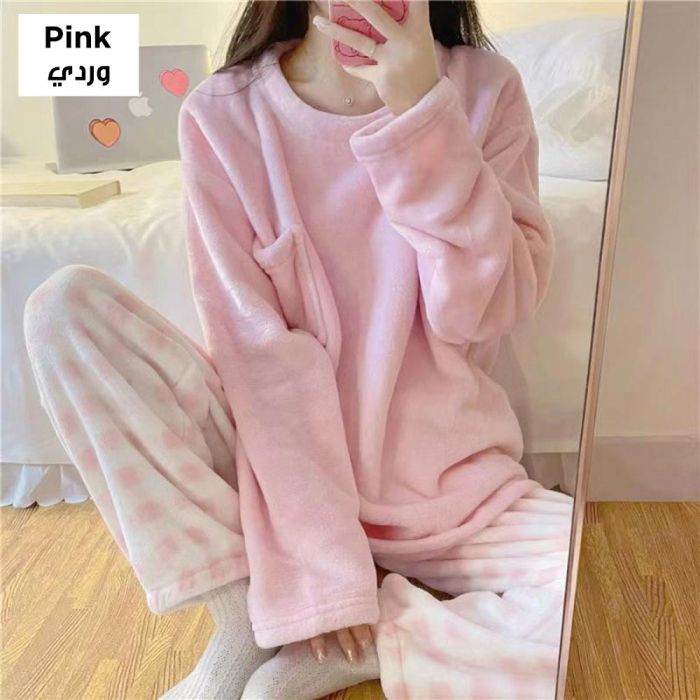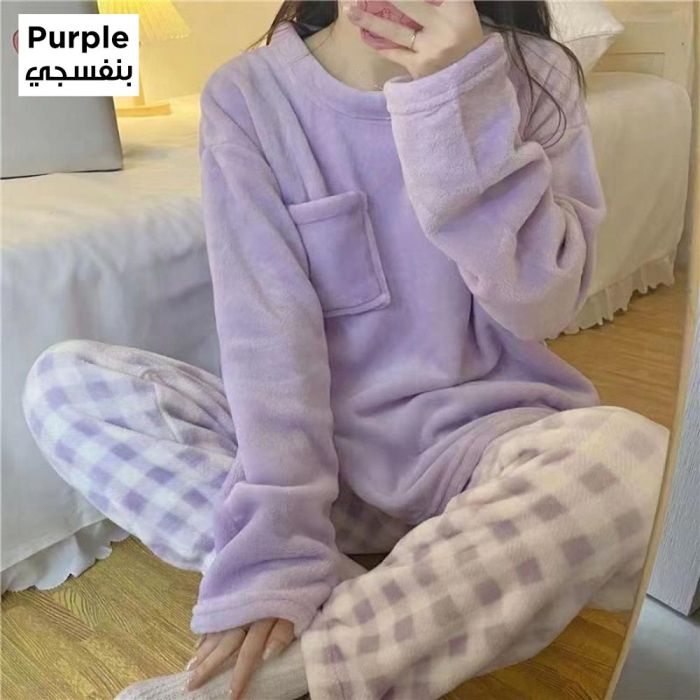 - طقم بيجامة مربعات مخملية دافئة للسيدات