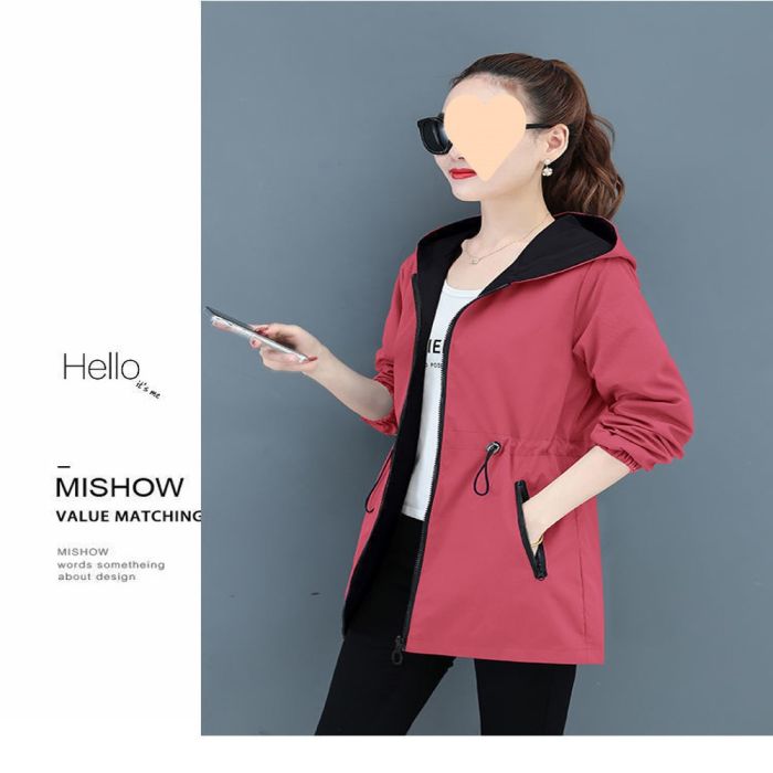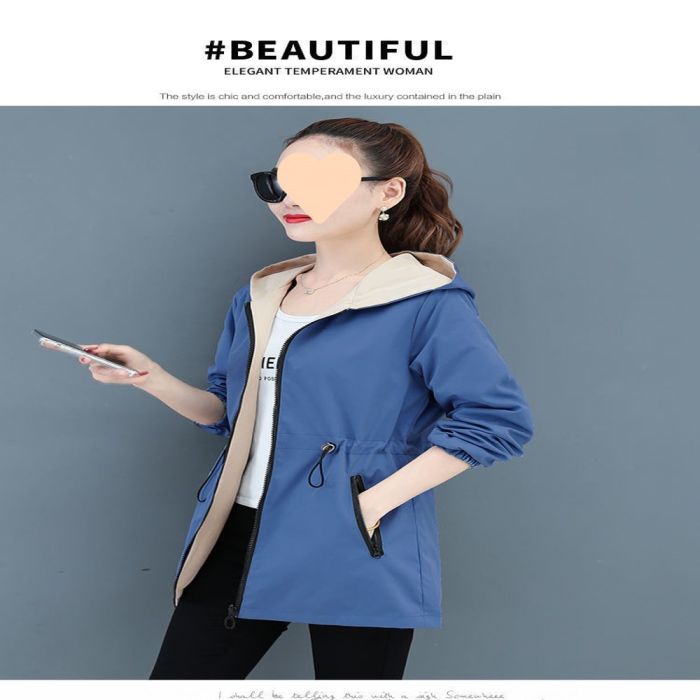 جاكيت واقِ من الرياح طويل للسيدات مصنوع من مواد متينة وعازلة للرياح، بتصميم كوري أنيق يمكن ارتداؤه على كلا الجانبين لمظهرين مختلفين، يوفر تغطية كاملة ودفئاً مثالياً لموسمي الربيع والخريف، تصميم فضفاض يسمح بحرية الحركة و يحافظ على جودته الفائقة.