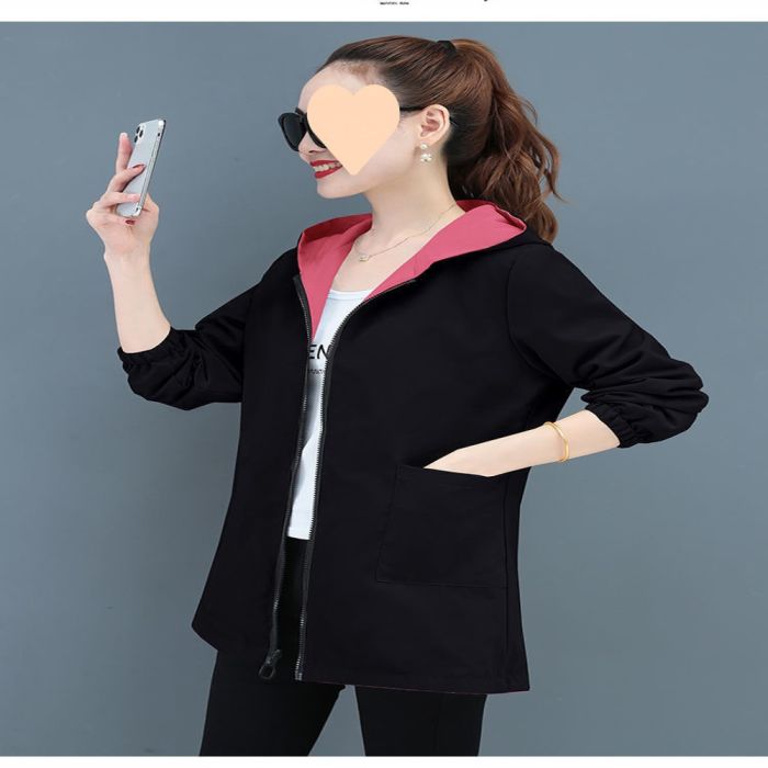 - جاكيت بوجهين مع سحاب أمامي وغطاء رأس للسيدات