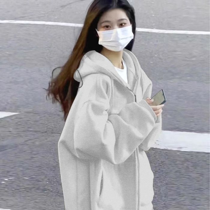 سترة خفيفة ولطيفة للارتداء اليومي، بتصميم واسع يمنحك راحة وأناقة في نفس الوقت، مناسبة لفصلي الربيع والخريف.صفقة اليوم هي سترة سويت شيرت بغطاء رأس وسحّاب للنساء