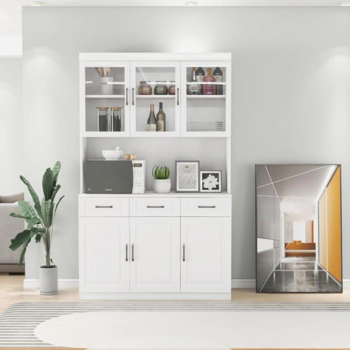 قم بتنظيم مساحتك بأسلوب أنيق مع منظم تخزين خشبي مع 3 أدراج وأبواب، مصنوع من هيكل خشبي متين، يوفر ترتيباً متناسقاً للأدوات والمستلزمات، مع درجين لحفظ الأغراض الصغيرة، مناسب للمطبخ وغرف المعيشة