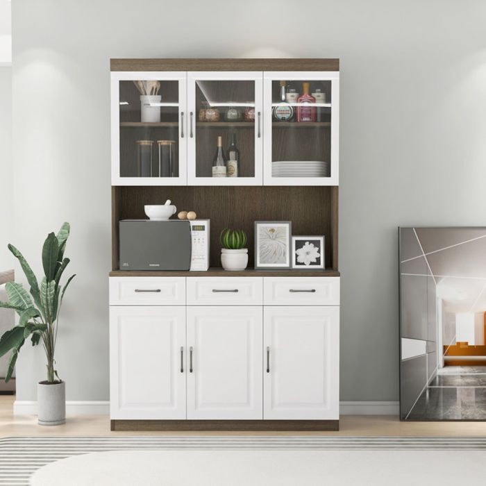 - أبواب علوية زجاجية شفافة لعرض الأدوات والمحتويات