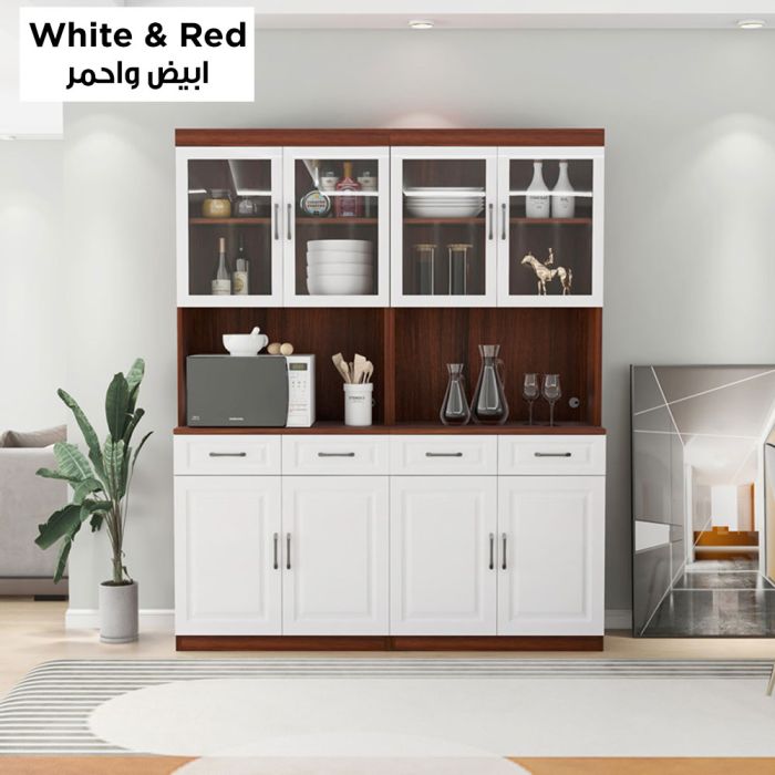 - أبواب علوية زجاجية شفافة لعرض الأدوات والمحتويات