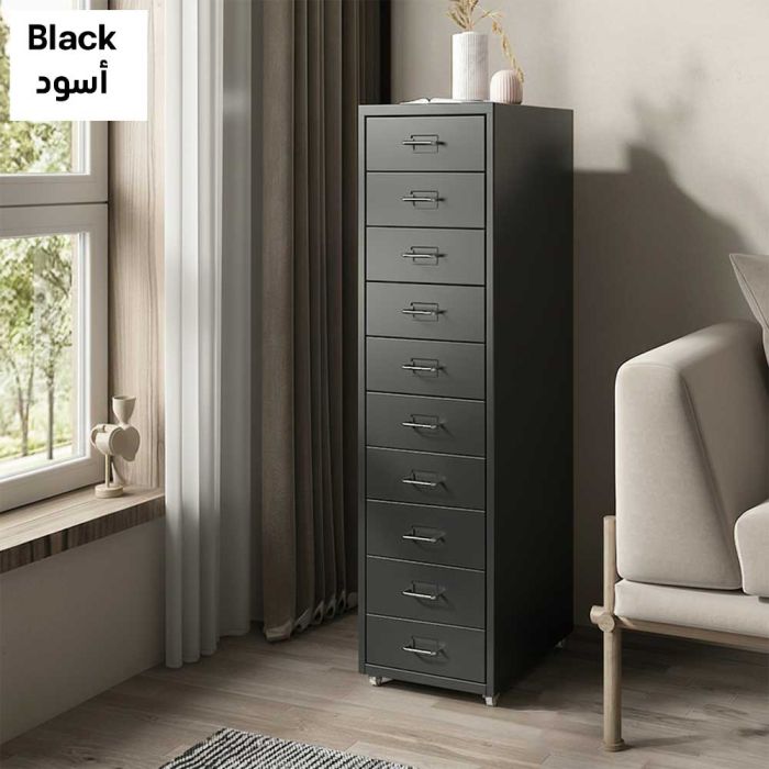 خزانة تخزين عملية بأدراج متعددة لتنظيم المستندات والأغراض اليومية، مناسبة للاستخدام بجانب السرير أو أسفل الطاولة.صفقة اليوم هي خزانة خشبية متحركة 10 أدراج