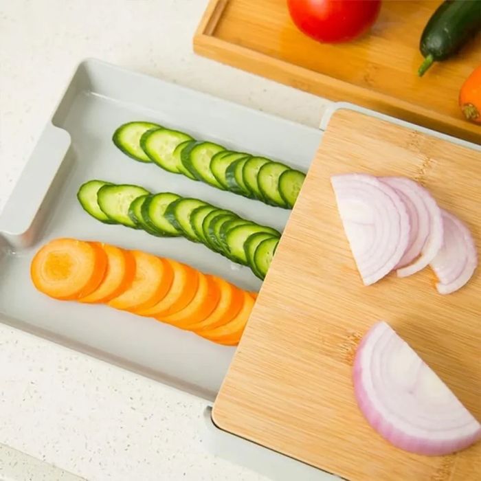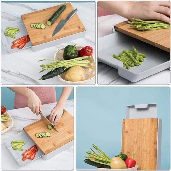 لوح تقطيع البامبو الذكي مع درج مدمج مصنوع من خشب البامبو الطبيعي المقاوم للبكتيريا، يتميز بتصميم عملي وأنيق مع قاعدة بلاستيكية متينة تضم درجًا مدمجًا لتجميع المكونات أو بقايا التقطيع بسهولة. يمنحك تجربة طهي أكثر نظافة وتنظيمًا، ويساعدك على تحضير الطعام بسرعة وكفاءة دون أي فوضى في المطبخ.