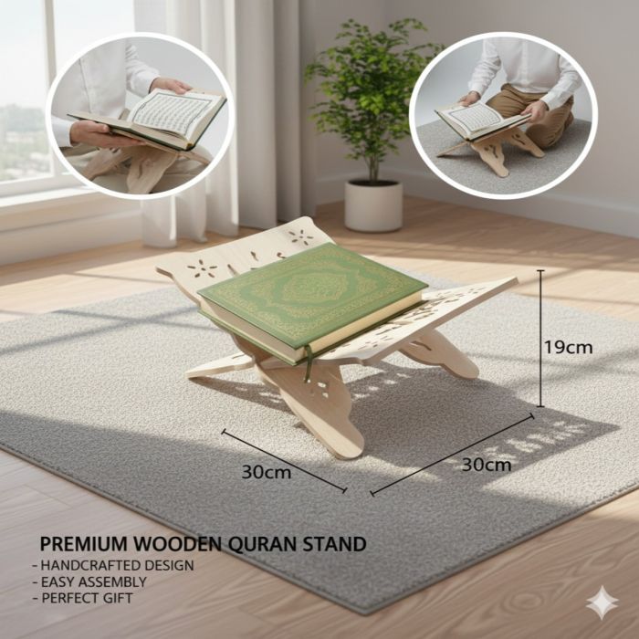 صمم هذا الستاند الخشبي القابل للطي ليجعل تلاوة القرآن أكثر راحة وجمالاً، حيث يجمع بين الهيبة التقليدية والعملانية الحديثة. يقدم خامة خشبية عالية الجودة مع نقوش فنية دقيقة تبرز جمال التراث وتضفي لمسة راقية على أي مساحة صلاة أو مكتب. يطوى بسهولة ليصبح مسطحاً، مما يجعل تخزينه وحمله بسيطاً ومنظماً. يوفّر زاوية قراءة مريحة وثباتاً ممتازاً للقرآن أو الكتب أو الأجهزة اللوحية، ليمنحك تجربة قراءة هادئة ومتوازنة دون عناء.