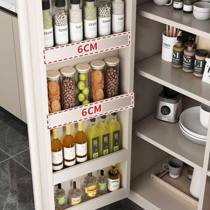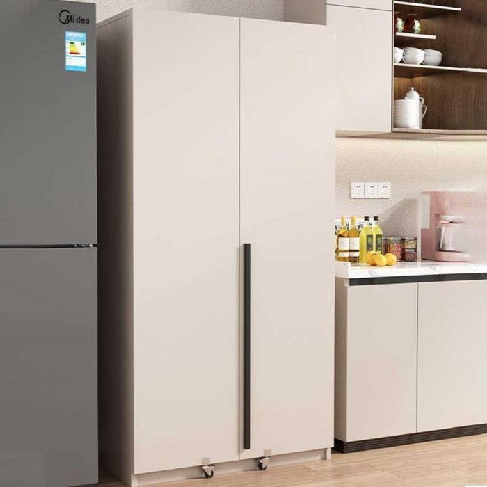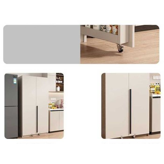 منظم مطبخ من خشب هندسي مع باب مزدوج بعجلات