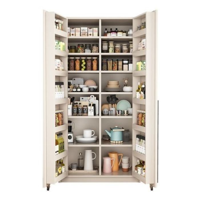 - منظم مطبخ خشبي مع باب مزدوج بعجلات