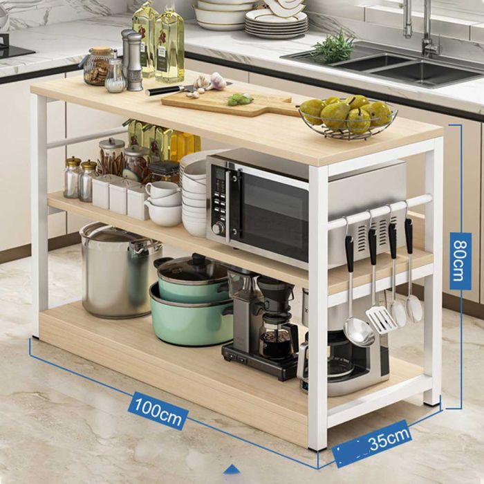 منظم مطبخ خشبي مع إطار معدني - 3 طبقات