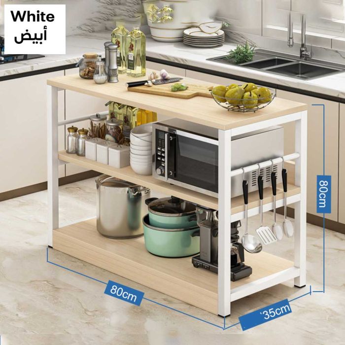 منظم خشبي مع إطار معدني - 3 طبقات مصنوع من أرفف خشبية مدعومة بإطار معدني متين، تصميم مفتوح يسهّل الوصول، طبقات مرتبة لتنظيم الأدوات، هيكل متوازن يمنح ثباتاً جيداً، مظهر عصري ينسجم مع المساحة
