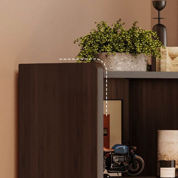 منظم خشبي متعدد الإستخدامات مصنوع من ألواح خشبية متقنة، تصميم مفتوح يسهل الوصول، طبقات مرتبة لتنظيم الكتب والأدوات، حواف ناعمة لراحة الاستخدام، شكل متوازن يضيف لمسة دافئة للمكان