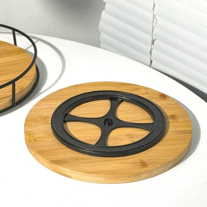 - ستاند دوار خشبي لتنظيم الزجاجات والتوابل