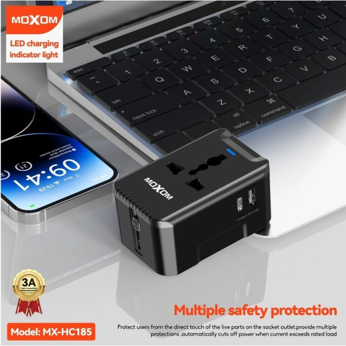 شاحن السفر هذا هو الحل الأمثل لعشاق التجول حول العالم. بفضل مقابسه العالمية، يمكن استخدامه في العديد من الدول (الاتحاد الأوروبي، الولايات المتحدة الأمريكية، المملكة المتحدة، أستراليا)، ويوفر طاقة فائقة بقوة 15 واط عبر منافذ USB-C وUSB-A. كما يُمكنه شحن جهازين في نفس الوقت دون القلق بشأن الأحمال الزائدة أو الماس الكهربائي. تصميمه الصغير والمحمول يجعله ضروريًا في كل رحلة