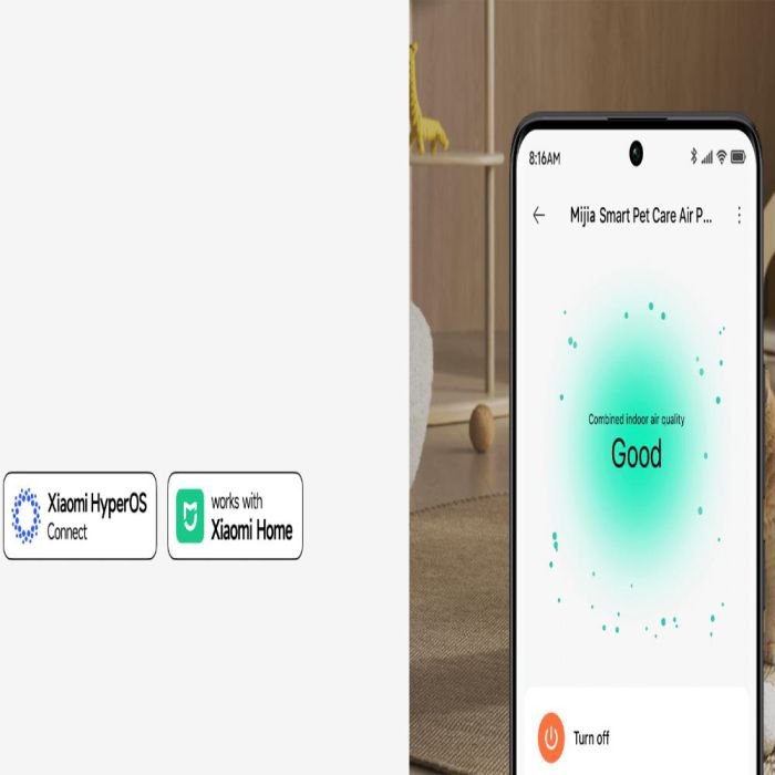 يُعد منقي الهواء Xiaomi Mijia Smart Pet Care حلاً مثاليًا لأصحاب الحيوانات الأليفة، حيث صُمم خصيصًا لإزالة الشعر والروائح والمواد المسببة للحساسية. يعتمد على نظام تنقية ثلاثي الطبقات يلتقط شعر الحيوانات ووبرها ويزيل الروائح الناتجة عنها بكفاءة عالية. يتميز بمدخل هواء 360° لامتصاص الملوثات من جميع الاتجاهات، مع فلتر عالي الكفاءة يزيل الجسيمات الدقيقة بنسبة تصل إلى 99.99%. كما يدعم التحكم الذكي عبر التطبيق، ويحتوي على مستشعر ليزري لمراقبة جودة الهواء في الوقت الفعلي، بالإضافة إلى وضع هادئ مناسب للحيوانات.