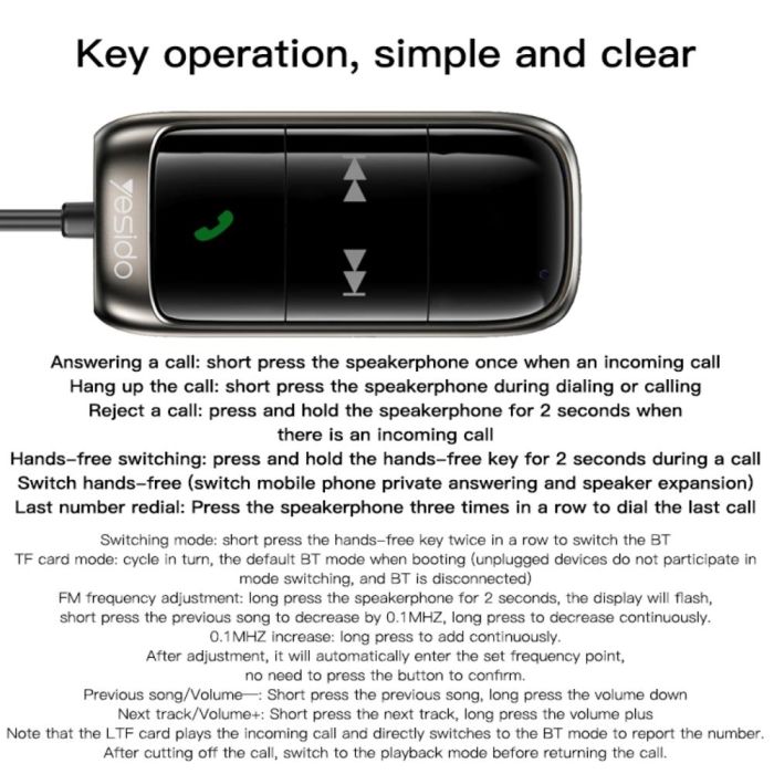 كيبل صوت وجهاز إرسال بلوتوث للسيارة من Yesido