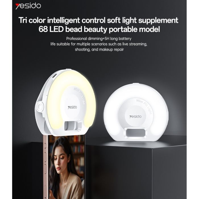 احصل على إضاءة مثالية في كل لحظة مع حلقة السيلفي من Yesido القابلة للتثبيت بمشبك. مزودة بـ 68 لمبة LED عالية السطوع تمنحك إضاءة متوازنة وناعمة لتبدو في أفضل إطلالة أثناء التصوير أو مكالمات الفيديو. تصميم نحيف وخفيف بسماكة 15 مم فقط، مع بطارية قابلة للشحن بسعة 400 مل أمبير تدوم حتى 5 ساعات من الاستخدام المتواصل. سهلة التثبيت على الهواتف والأجهزة اللوحية واللابتوبات، الخيار المثالي للمبدعين وعشاق الجمال والتصوير.