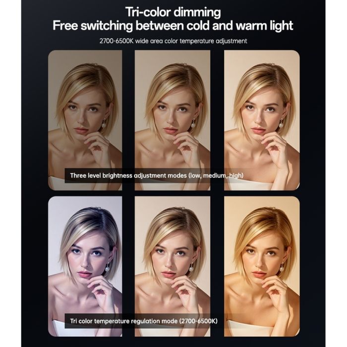 - 9 أوضاع ضوء مختلفة (3 دافئ، 3 بارد، 3 مختلط)