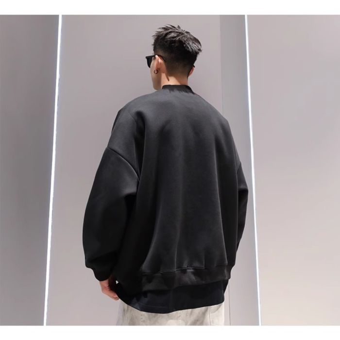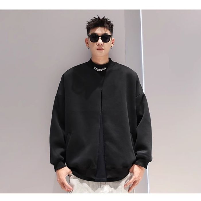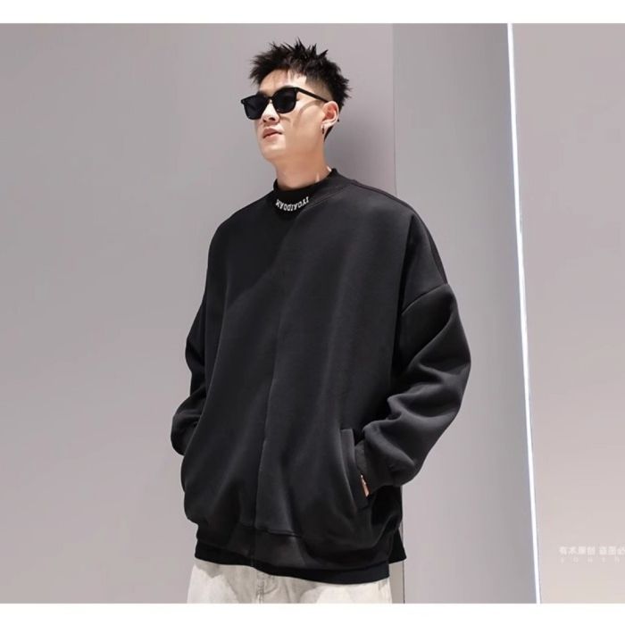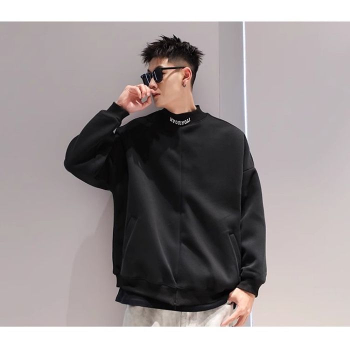 سويت شيرت بسحاب وياقة مرتفعة للرجال مصنوع من خامة ناعمة ومريحة، يمنح إطلالة عصرية بأسلوب ستريت أنيق، تصميمه الفضفاض مع الياقة المرتفعة يوفر دفئاً خفيفاً، مناسب لفصلَي الربيع والخريف، يجمع بين الراحة والمظهر الجذاب مع الحفاظ على جودته
