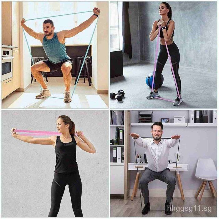 - يمكن استخدام أكثر من رباط معًا للحصول على مقاومة أعلى وتمرين أكثر تحديًا.