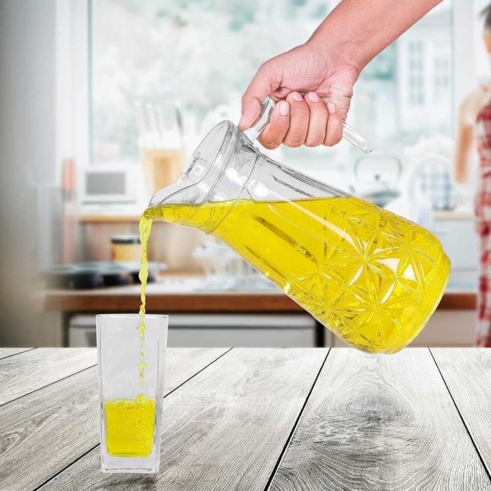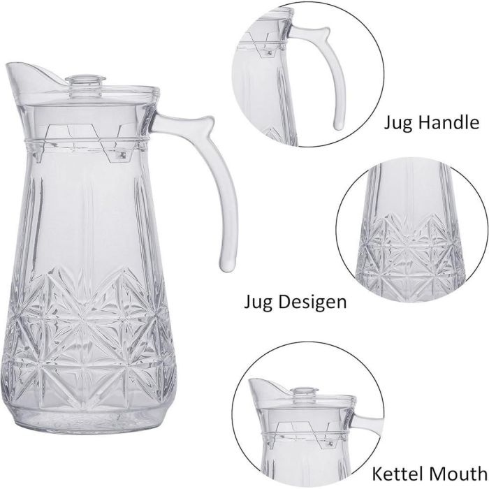 Enjoy serving your favorite cold drinks in a clear glass pitcher that adds a touch of cleanliness and elegance to your table. It comes with a tight-fitting lid to keep the flavor fresh.