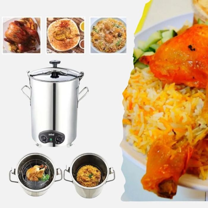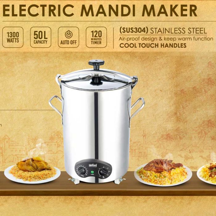 Create restaurant-style mandi and steamed rice at home effortlessly with the 50 L Electric Mandi Maker. Constructed from durable SUS304 stainless steel and a non-stick inner pot, this 1300 W powerhouse heats up fast and handles large cooking batches with ease.
