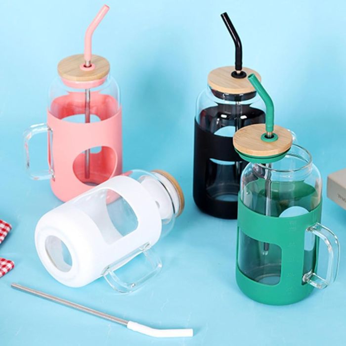 - 1500ml Glass Tumbler with Straw and Lid by Soulnioi -