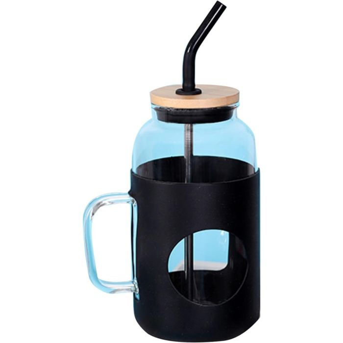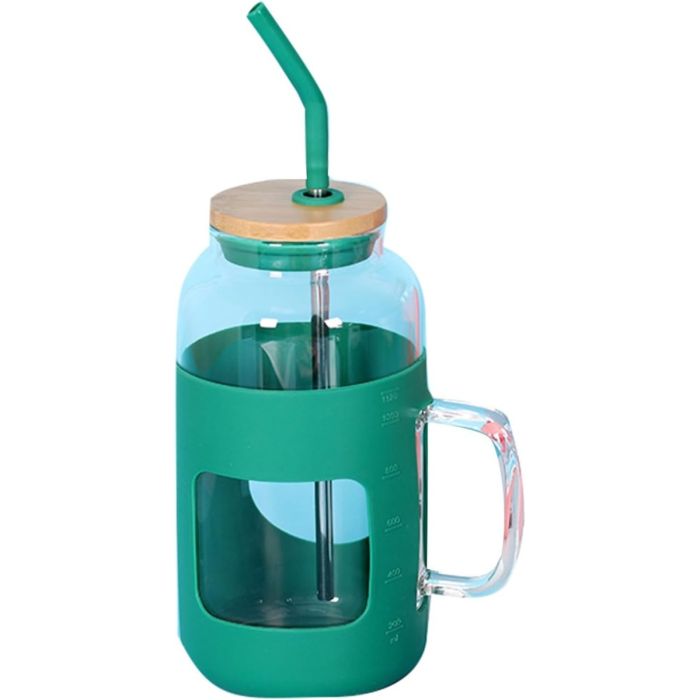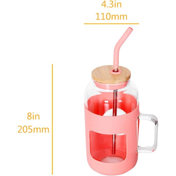 - reusable glass water cup with straws and lids has ergonomic handle, so you can easily hold the cup, no matter if the cup is cold or hot, you can use the handle to avoid irritation of your hands