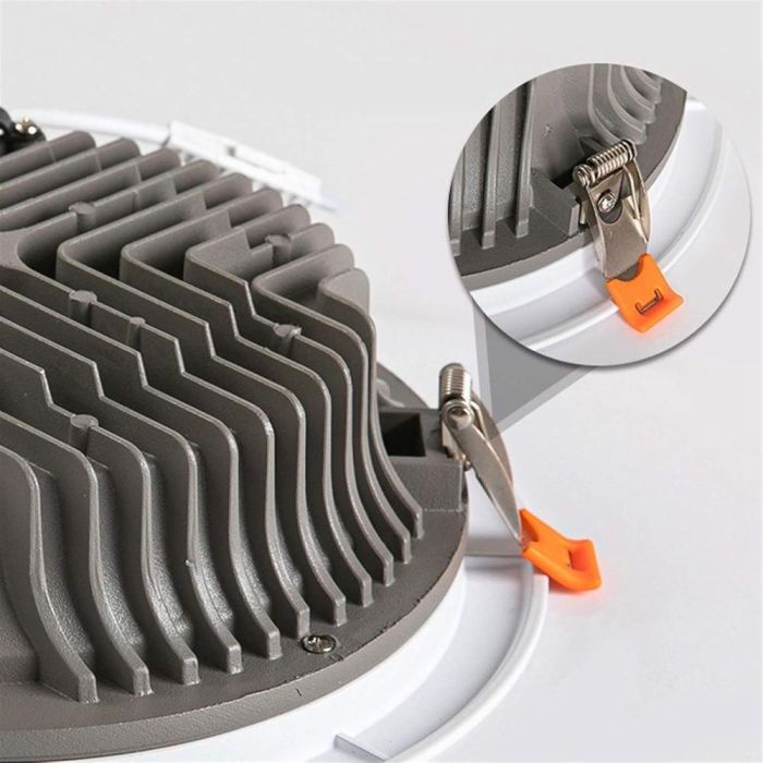 This down light is constructed from durable die-cast aluminum to ensure durability and corrosion resistance, while the shell acts as a heatsink, prolongs the life of the LED chip. Thanks to Chip-on-Board (COB) LED technology to provide a brighter, more uniform light with a wide 60° beam angle, while minimizing glare for a comfortable atmosphere. Its recessed design makes it easy to install and provides a clean, seamless look in any ceiling