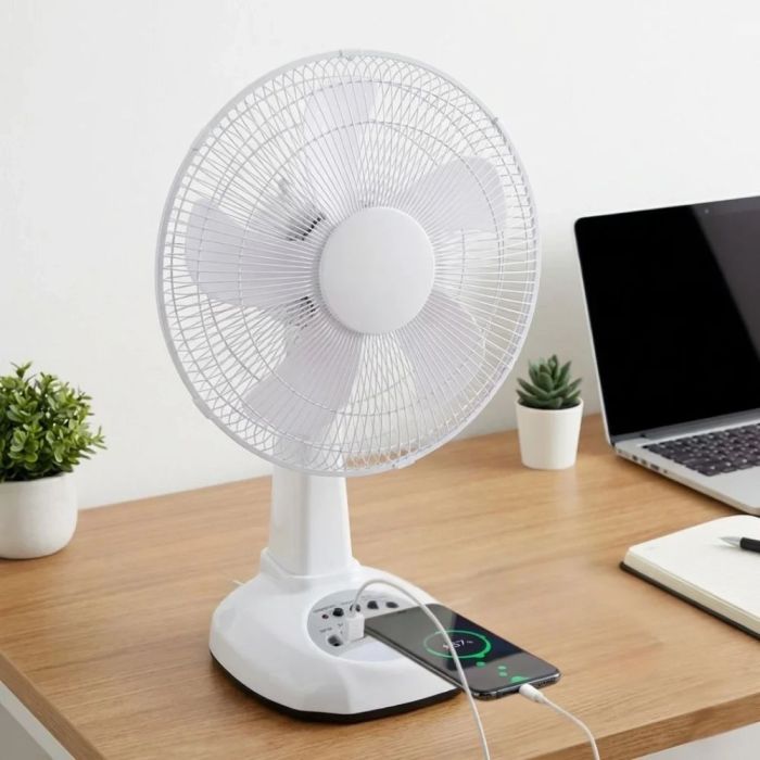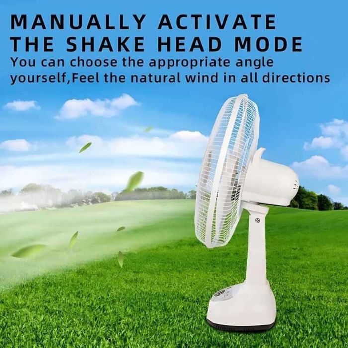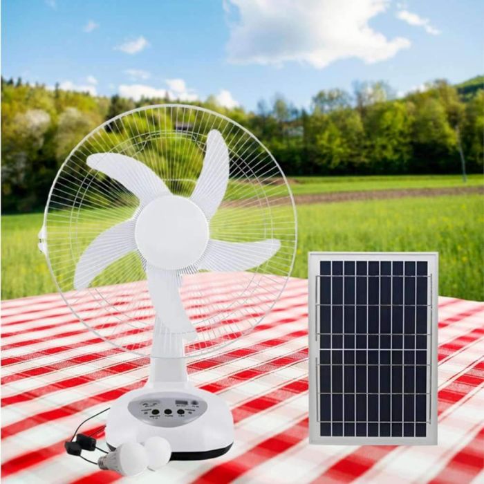 - Cordless Fan powered by solar or direct electricity