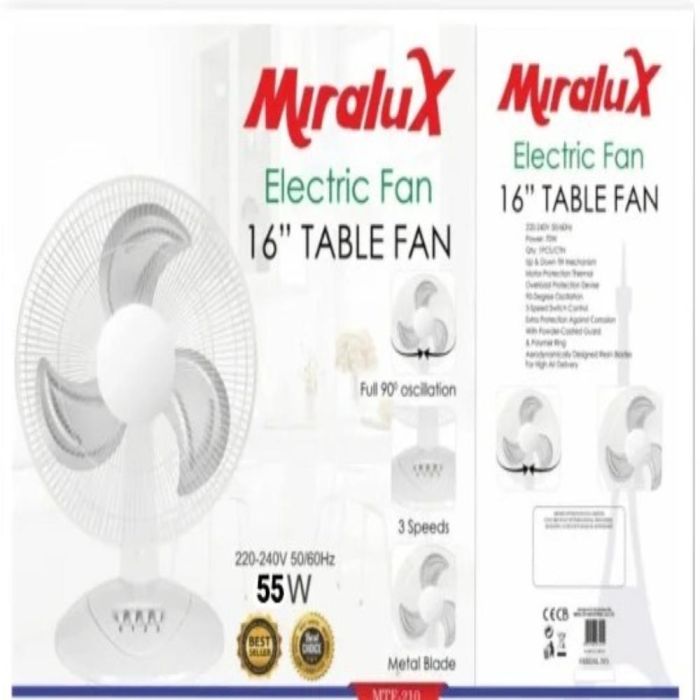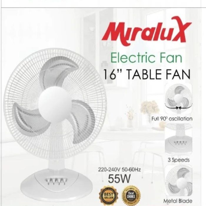 - 16 Inch Table Fan with Metal Blades and 3-Speed Control 55W