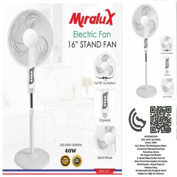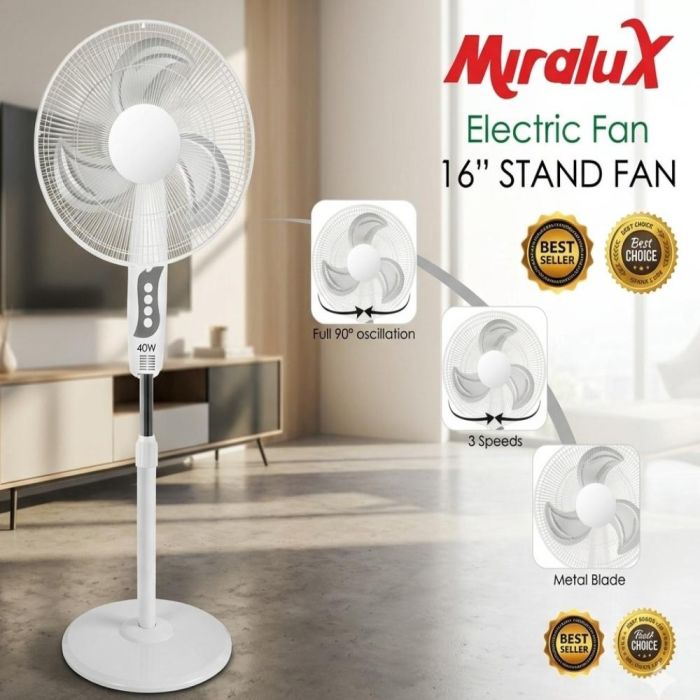 - 16 Inch Stand Fan with Metal Blades and 3-Speed Control 40W