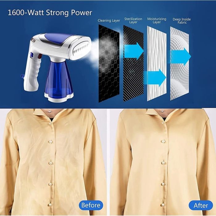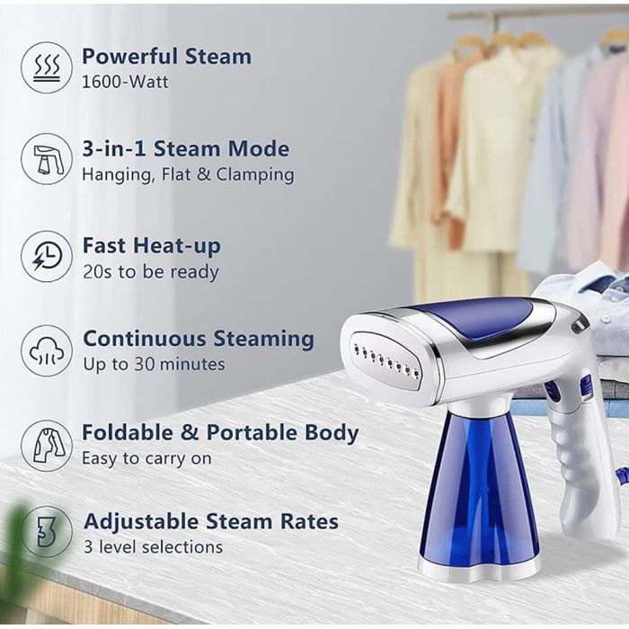 This easy-to-use portable steamer helps you look great in no time. It refreshes, sanitizes, and deodorizes clothes, with Fast heat up in 20 seconds, continuous steaming up to 30 minutes and the ability to use any water bottle