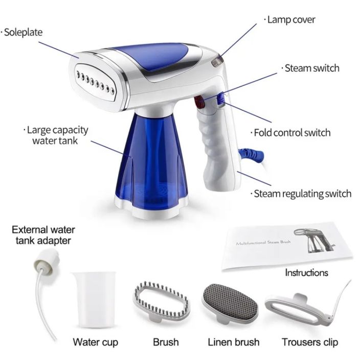 Handheld design, compact and convenient, comes with an extra brush heads to dust off and refresh clothes for ironing jackets and evening dresses