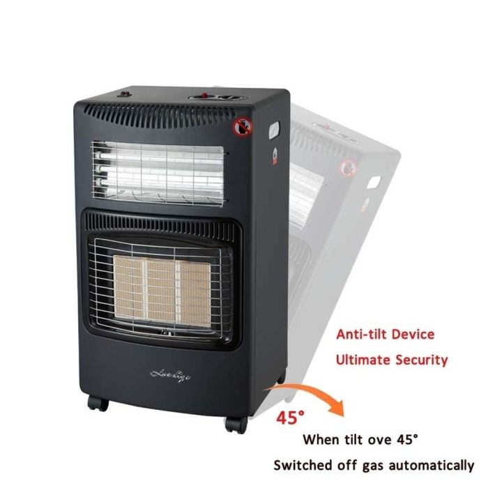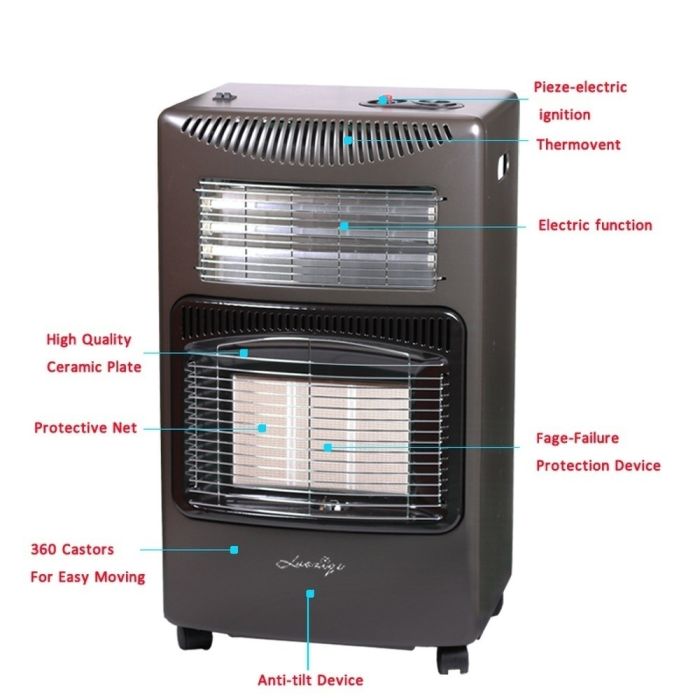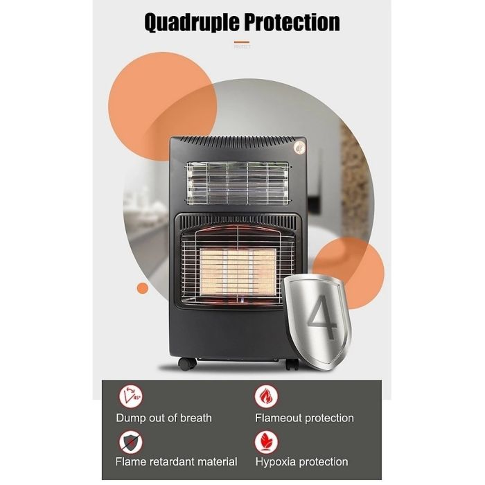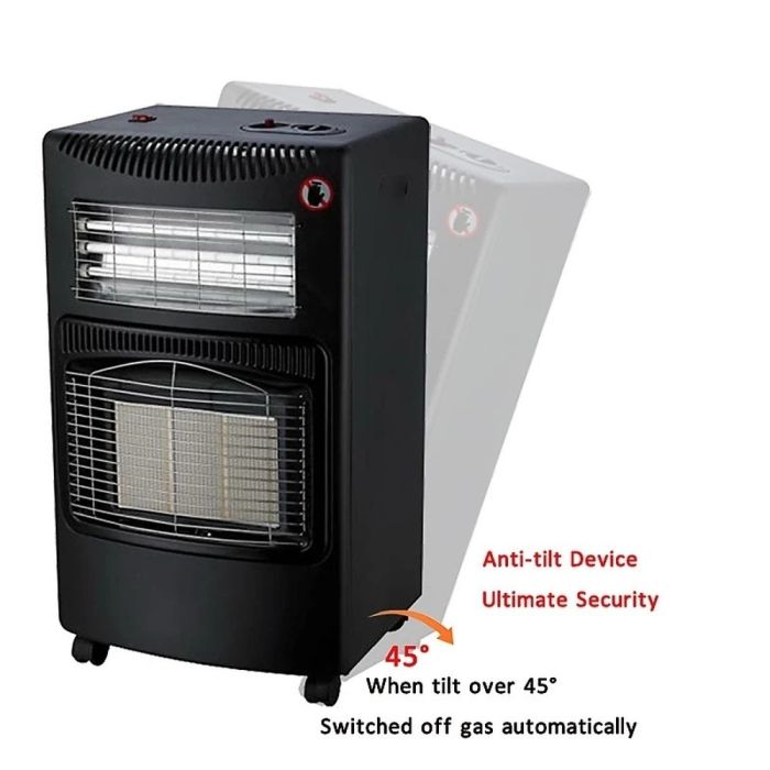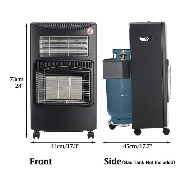 Enjoy instant and continuous warmth anywhere with this 2-in-1 gas and electric heater. It offers adjustable heat levels and dual heating modes for optimal comfort, along with flame-out protection and an oxygen monitoring system. Wheels and a convenient transport system ensure effortless movement, keeping you warm at home, in the office, or while traveling.