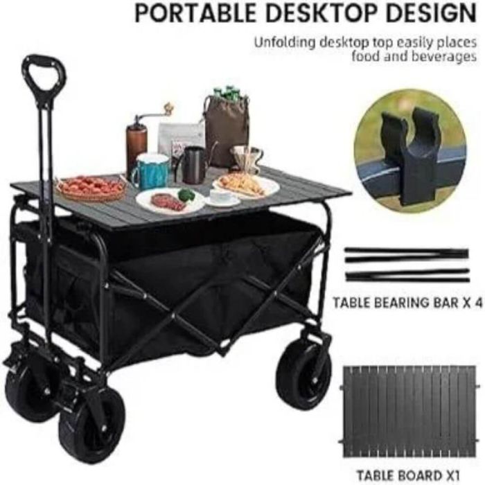 2 in 1 Trolley Cart Wagon 120L with Foldable Table Top
