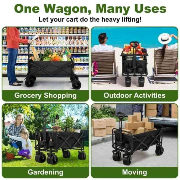 This heavy duty wagon takes easy transport as well as space-saving storage into consideration, it can be folded for easy storage. It's also equipped with large all-terrain wheels to ensure smooth transport on multiple surfaces