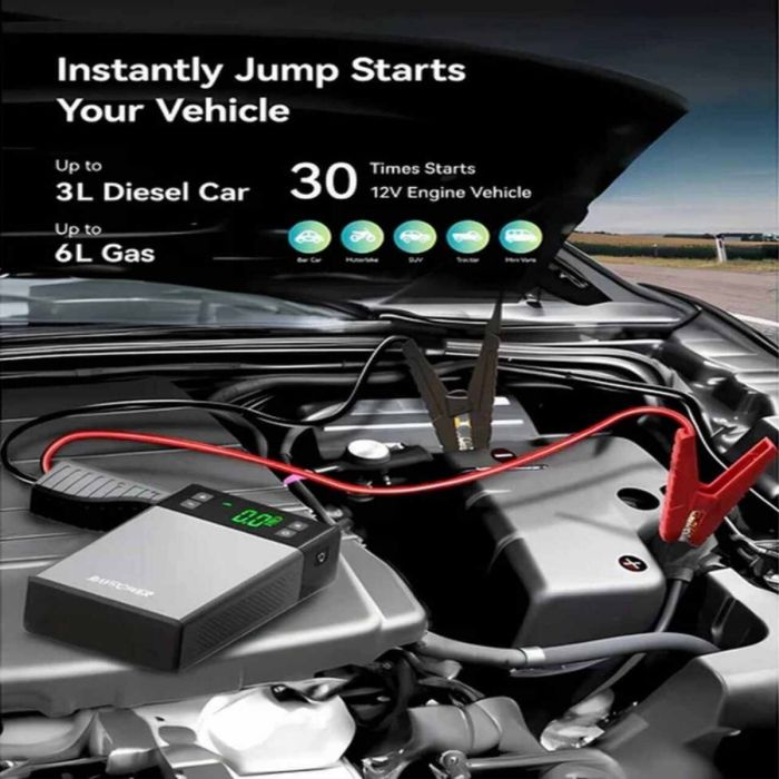 When your car refuses to cooperate, this compact powerhouse is the quiet backup plan you’ll be glad you packed. Built around a 12000mAh Li-ion battery, it combines a strong 12V jump-start output with an integrated air compressor that inflates up to 150 Psi, so you can handle a flat tire and a weak battery from the same device. The clear LCD display keeps you informed at a glance, while the built-in torch with SOS and multiple safety protections add extra confidence when you’re dealing with roadside moments.
