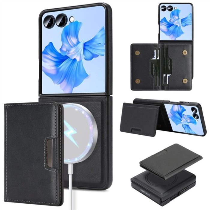 - 2 in 1 Samsung Z Flip Magnetic Leather Case with Wallet - Z Flip 3 - Black