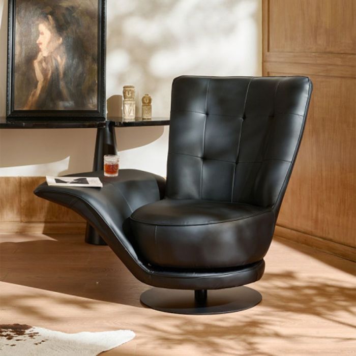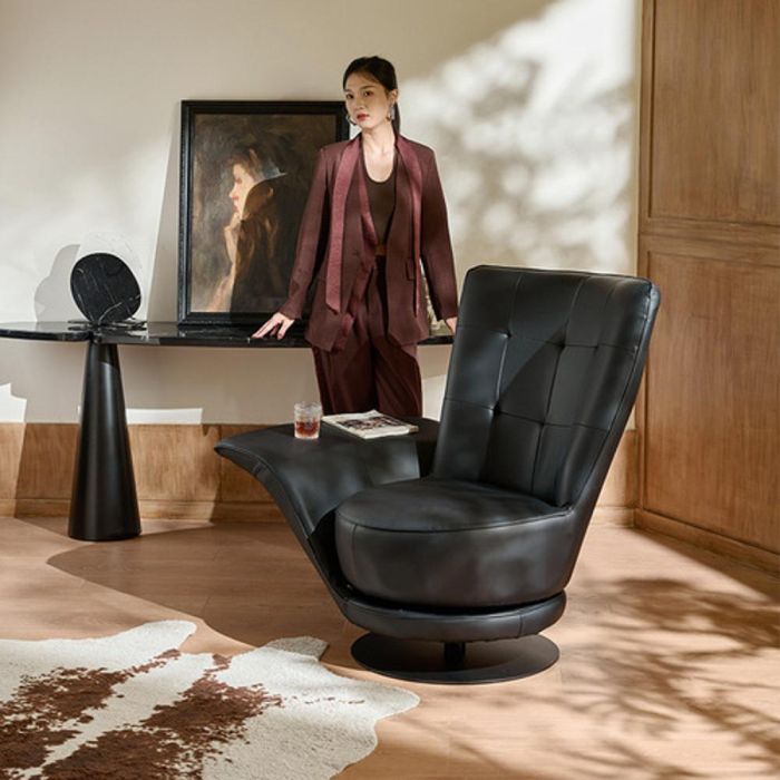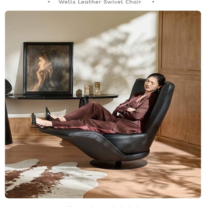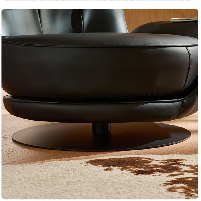 This 2 in 1 swivel relaxing chair with side table is made of premium natural leather and a stable structure, an elegant smooth rotating design with an integrated side table, offering deep comfort, supportive seating, and a luxurious touch for modern living spaces
