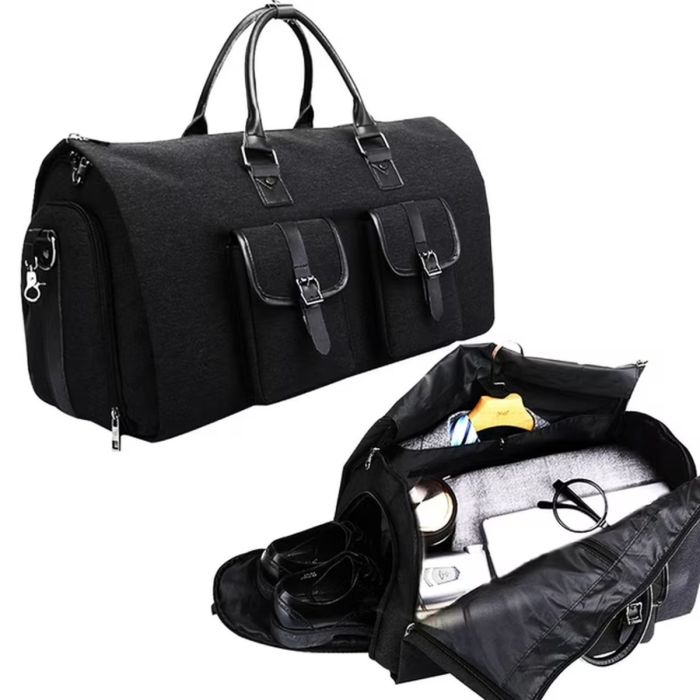 Travel sharp and smart with the 2-in-1 Travel Suit Garment Bag with Shoe Compartment, where style meets practicality. This innovative bag transforms from a sleek garment carrier into a spacious duffel, keeping your suits, dresses, and formalwear wrinkle-free while providing extra room for shoes, accessories, and travel essentials. Ideal for business trips, weddings, or weekend getaways, it combines elegance, convenience, and function all in one