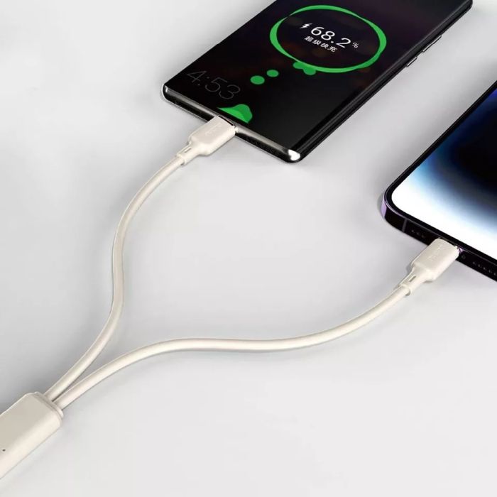 Tired of multiple cables? The 2-in-1 cable is your solution! Compatible with Type-C and Lightning devices, it allows you to charge all your gadgets with just one cable. Its flexible design is perfect for everyday use at home, in the office, or on the go. Enjoy convenience and simplicity!