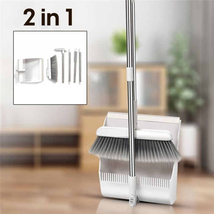 - 2 in1 Folding Standing Broom with Dustpan Rotatable