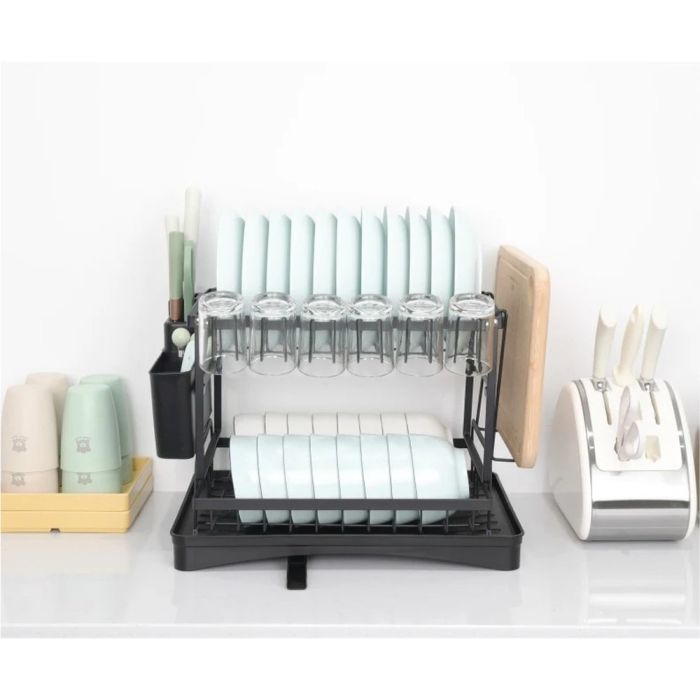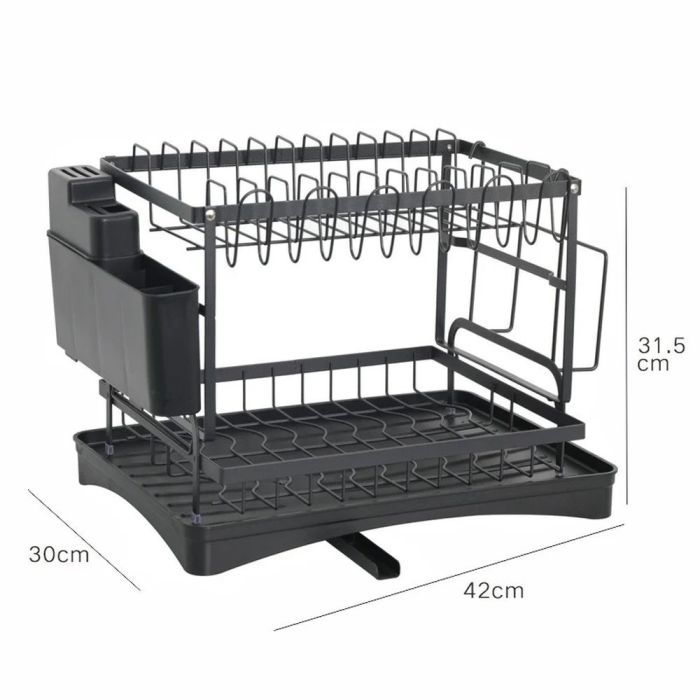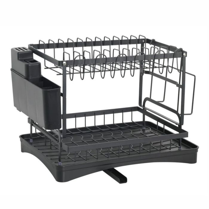 Enjoy a more organized kitchen and eliminate the problem of piled-up dishes. This foldable rack offers an immediate and practical solution, as you can use it right away without any assembly. Its two-tier design cleverly utilizes vertical space, while the bottom drain tray ensures your work surface stays dry. It can be easily stored when finished and is an essential tool for keeping your kitchen efficient.