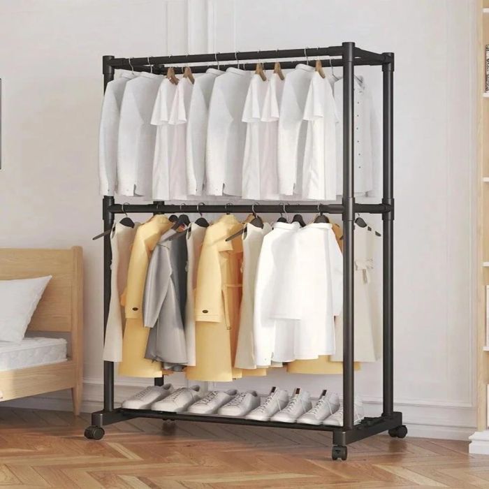 Ideal for bedrooms and laundry rooms, it's versatile enough to fit all types of clothing. Its vertical design makes efficient use of space, and its height can be adjusted as needed, helps organize clothes in small spaces.