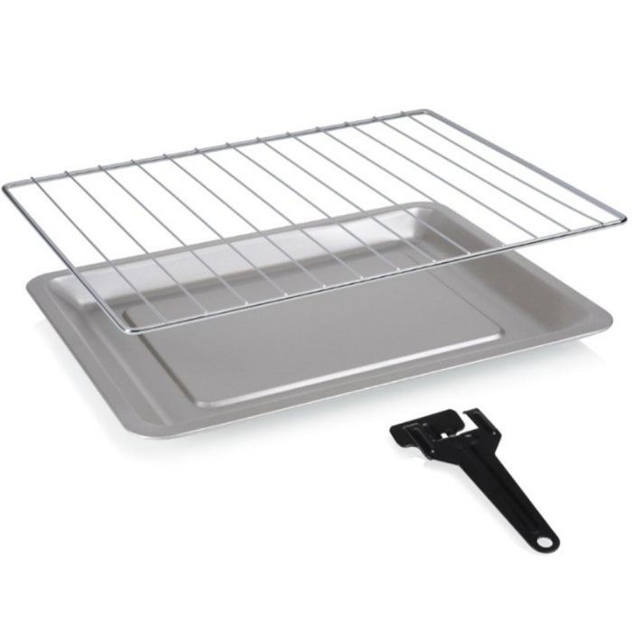 - Included accessories: Baking tray, wire rack, rotating spit set